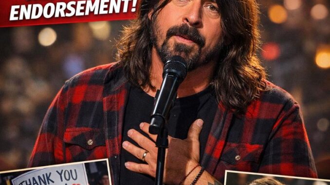In a moment that has sent waves of excitement and emotion across the global music community, Foo Fighters frontman Dave Grohl has just made a shocking and deeply heartfelt endorsement that many fans are calling one of the most meaningful statements of his career. Known for his honesty, humility, and unwavering connection with fans, Grohl’s latest message went far beyond music—it was a powerful endorsement of hope, creativity, and staying true to one’s values.